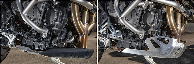 스키드 플레이트 : GT 프로에는 플라스틱 엔진 커버가 장착되고 랠리 프로에는 알루미늄 스키드 플레이트가 장착된다