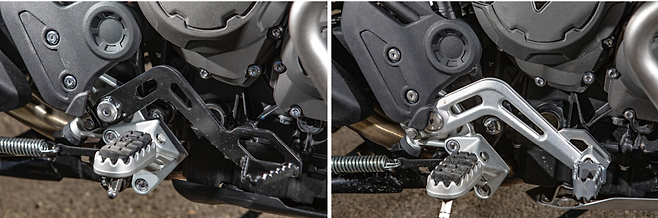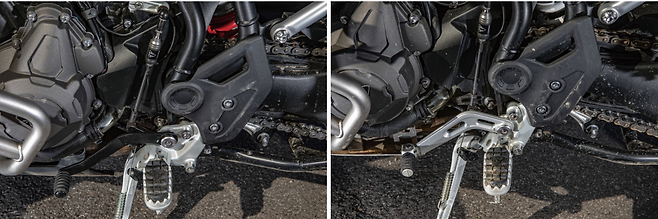 풋페그와 리어브레이크 레버 : 풋 패그의 고무를 제거할 수 있으며 랠리 프로에는 높이 조절이 가능한 브레이크 레버가 장착된다