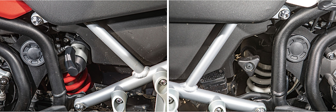 텐덤 스텝 : 과거 차체의 일부였던 탠덤 스텝은 볼트 온 방식으로 변경되어 정비성이 좋다