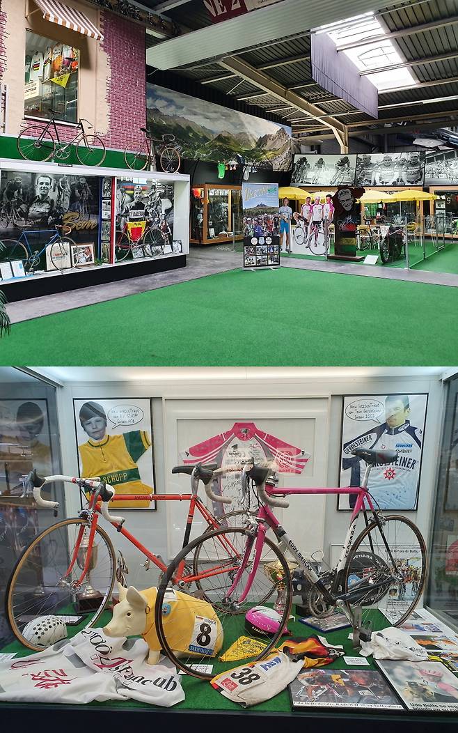 이뿐만이 아닙니다. 1전시관을 거의 다 둘러봤을 때쯤 소박한(?) 공간에 마련된 여러 경주용 자전거를 발견할 수 있습니다. 경주용 사이클과 관련된 전시 공간으로, 옛 도로 경주용 자전거들은 물론, 경기 당시 사진과 주요 선수들에 대한 소개 및 화보집, 그리고 선수들 유니폼 등, 여러 관련 소품이 전시돼 있습니다. 자전거 정말 좋아하는 유럽인들이 만큼 진스하임 박물관 말고도 많은 자동차 박물관에서 자전거를 전시하고 있는데, 이는 유럽 자동차 박물관의 또 하나의 특색이 아닐까 합니다.