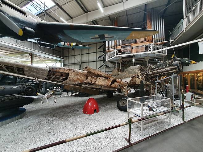 이 전쟁관 안에서도 시선을 먼저 사로잡은 것은 1989년 독일과 프랑스 다이빙팀에 의해 인양된 독일 폭격기 융커스Ju-87이었습니다. 슈투카라는 애칭으로 잘 알려져 있는 전투기로 슈투카는 급강하폭격기를 뜻하는 문구의 약자이기도 합니다. 1935년 첫 비행을 해 1945년까지 전쟁에 사용되었고, 퇴물 소리를 듣기도 했지만 활약상만큼은 탁월함 그 자체였습니다. 해당 폭격기를 몰던 조종사는 현재까지도 실종으로 기록되어 있다고 하네요.