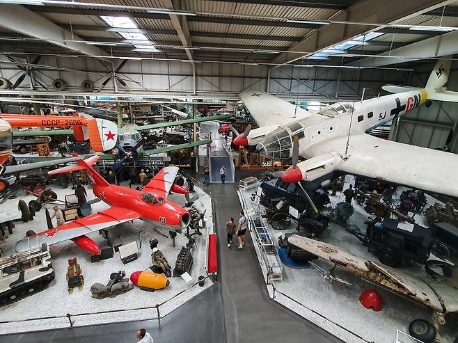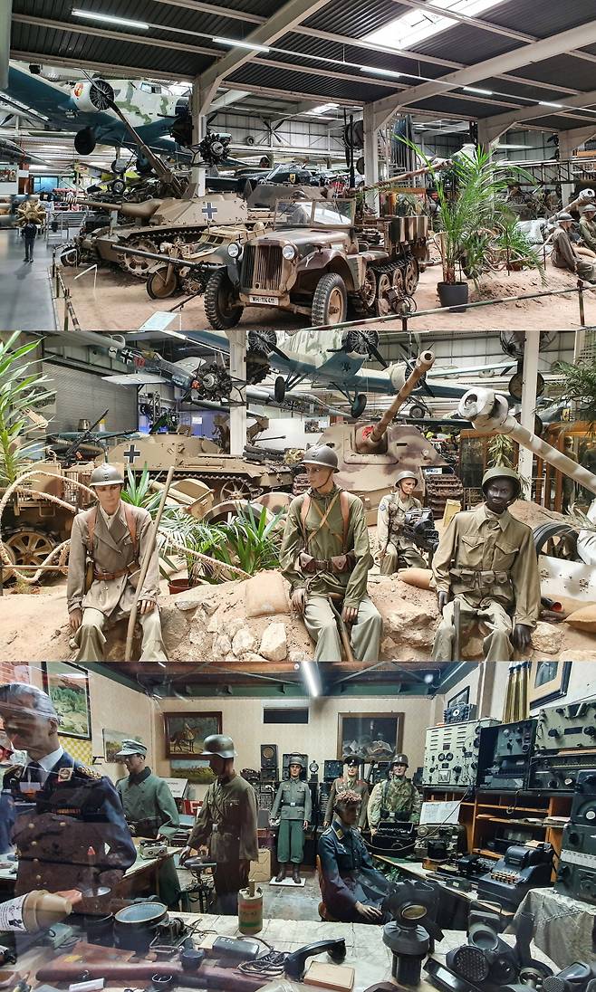 화려한 미국 자동차들이 전시돼 있는 공간을 가로질러 안쪽으로 들어가면 전혀 다른 분위기가 다시 한번 관람객들을 놀라게 합니다. 2차 세계 대전 당시 사용되었던 군용차와 비행기, 그리고 탱크와 포탄 등이 말 그대로 숨 쉴 틈을 주지 않을 정도로 가득 들어차 있기 때문이죠.