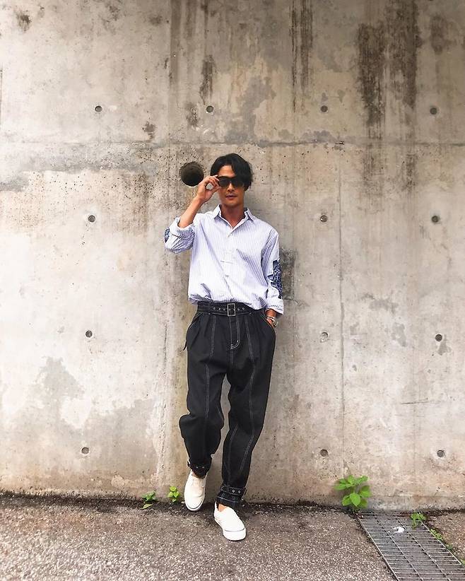 사진 속 배정남은 스트라이프 셔츠에 데님 팬츠로 멋스러움을 뿜어내고 있다.