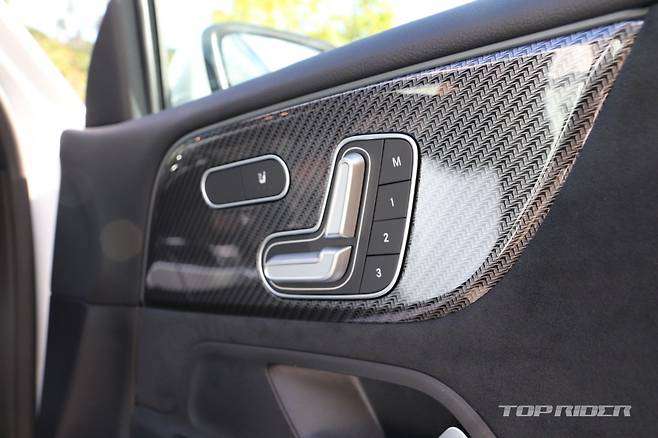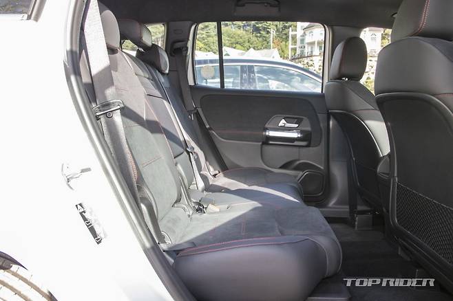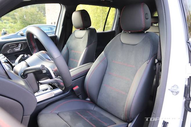 시트는 아티코 인조 가죽 및 다이나미카 재질로 이뤄졌다. 대시보드와 도어 트림에는 카본 스트럭쳐가 적용됐다. 넓은 실내 공간은 GLB만의 강점이다. 1열 헤드룸은 1035mm로 시트 포지션을 최대한 낮게 설정해도 머리 공간이 여유가 있다. 2열 레그룸은 967mm(5인승)다.