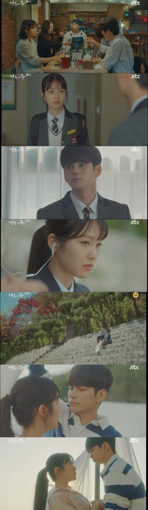 시간은 경우연이 고등학교 때로 돌아갔다. 경우연과 이 수는 2년 째 같은 반인데다 동네까지 같은 친구였다. 착하고 소심한 성격으로 우연이 친구들의 괴롭힘을 받을 때 이 수는 종종 도움을 줬다. 자신의 뒷담화를 듣고 기분이 울적한 우연에게 다가가 달달한 노래가 나오는 이어폰을 귀에 꽂아주는 등 우연이 위기에 처할 떄마다 이 수는 나타났다.