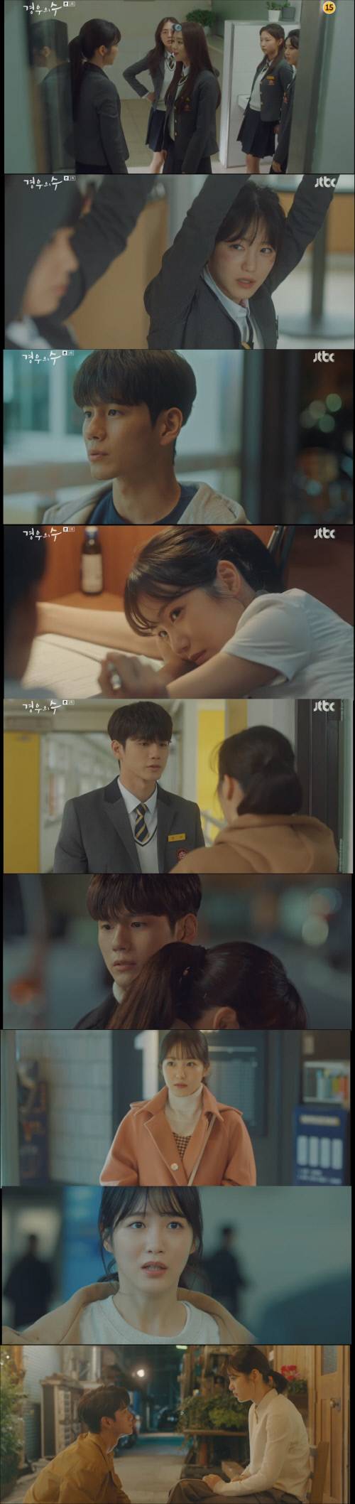 그러던 어느 날 짝피구 중 수가 던진 공에 우연은 정통으로 맞아 얼굴에 멍이 들었다. 경우연은 친구 한진주(백수민 분)와 화장실을 지나가던 중 자신의 뒷담화를 들었다. 우연은 참고 지나가려고 하지만 화끈한 성격의 진주는 이를 참지 못하고 평소 우연을 괴롭혔던 아이들에게 “그만하라”고 소리쳤다. 결국 이들의 싸움은 육탄전으로 번졌다. 화장실에 있던 김영희(안은진 분)도 우연히 싸움에 휘말렸다. 경우연, 한진주, 김영희 셋은 화장실 싸움으로 함께 징계를 받았고 세 명의 우정이 시작되는 순간이었다.