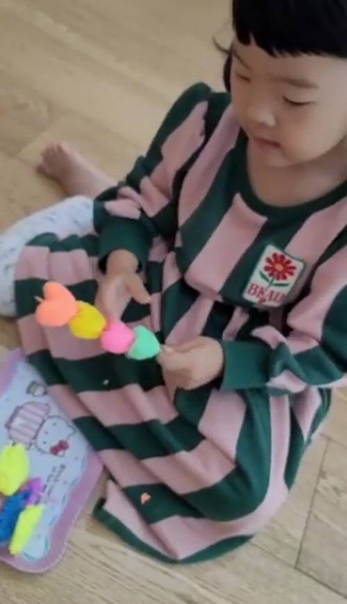 영상 속 소유진의 딸 서현, 세은은 폼클레이로 음식을 만들고 있다.