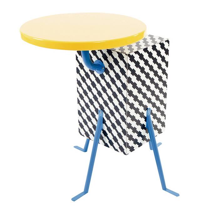 미드센트리 모던 스타일의 빈티지 가구를 이용해 오래된 아파트를 직접 꾸민 인테리어 장인, 김나영. 그녀의 거실에는 르코르뷔지에의 LC3 소파를 비롯해 아르테미데의 쇼군 타블로 플로어 램프, 조지 넬슨의 서랍장 등 다양한 가구가 한데 모여 조화를 이루고 있다. 최근에는 조형물이라고 착각할 정도로 독보적인 존재감의 아이템이 등장했는데, 바로 멤피스의 크리스탈 테이블이다. 조금 생소할 수 있는 멤피스는 80년대에 에토레 소트사스를 중심으로 당대 젊은 디자이너들이 모여 결성한 브랜드다. 멤피스의 제품들은 눈에 띄는 색상, 점·선·면으로 이뤄진 형태와 패턴 등 단순하지만 독창적인 디자인이 특징. 이 제품 역시 채도가 높은 파란색 금속 다리와 노란색 원형 플라스틱, 흑백 패턴 직사각형 몸통의 독특한 조합이 매력적이다. 사이드 테이블이지만 밋밋한 공간에 두기 좋은 포인트 아이템이나 오브제로도 사용 가능하다.