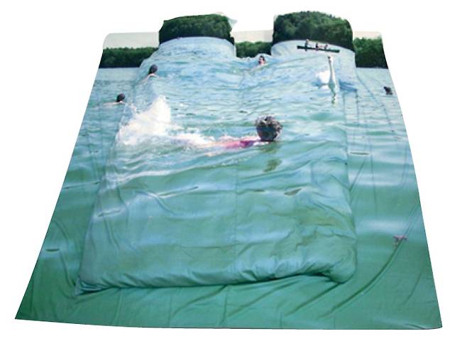 주인장의 감성이 그대로 담겨 있는 오혁의 집은 스페인 매거진 〈아파트먼트〉에 소개될 만큼 감각적이고 센스 있는 인테리어를 자랑한다. 그의 인스타그램 집 사진에는 ‘오혁스러운’ 아이템이 많이 보이는데, 가장 재미있는 건 무심하게 누워 있는 오혁 뒤로 깔려 있는 침구다. 이 제품은 블레스의 베드시트 레이크로 국내에서 대중적인 브랜드는 아니지만, 인테리어에 관심 있는 MZ세대라면 한 번쯤 눈여겨봤을 것이다. 독일 브랜드 블레스는 하나의 장르에만 국한되지 않고, 틀을 깨는 위트 있는 디자인이 주를 이룬다. 브랜드의 성격에 걸맞게 침구가 주는 따뜻한 이미지와는 대조적으로 호수에서 수영하는 사람들과 백조의 모습이 담긴 차가운 분위기의 사진을 베개와 이불 커버에 프린트했다. 이 밖에 바다와 모래사장의 경치, 잠자는 커플의 모습이 프린트된 제품도 만날 수 있다.