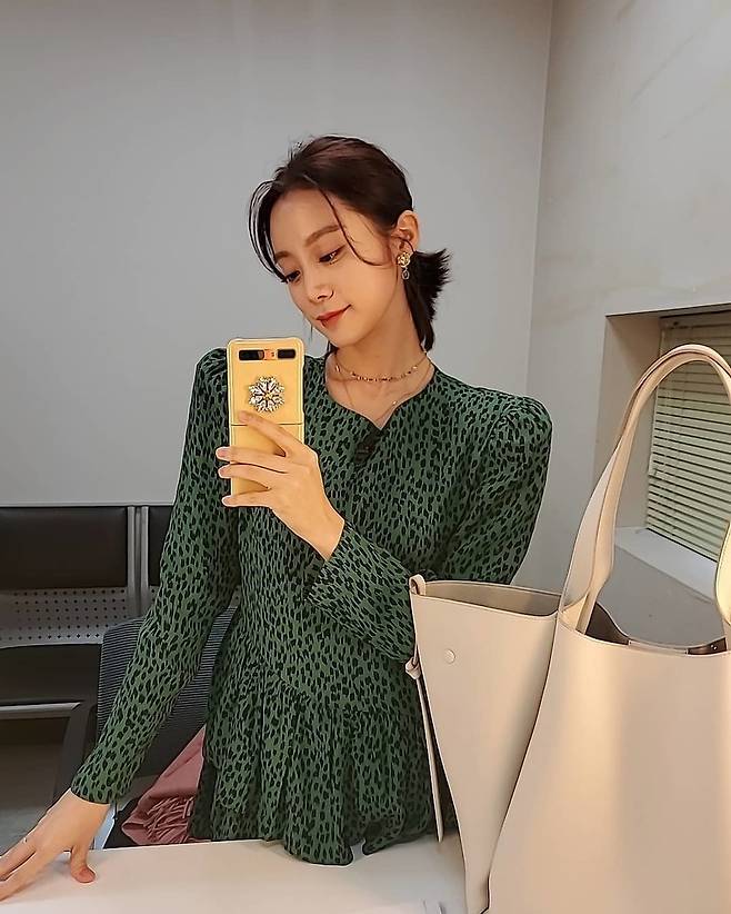 사진 속 혜림은 초록색 호피무늬 원피스를 입고 거울 셀카를 남기고 있다. 결혼 후 한층 물오른 미모가 시선을 뗄 수 없게 만들었다.