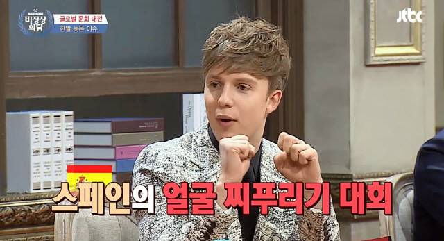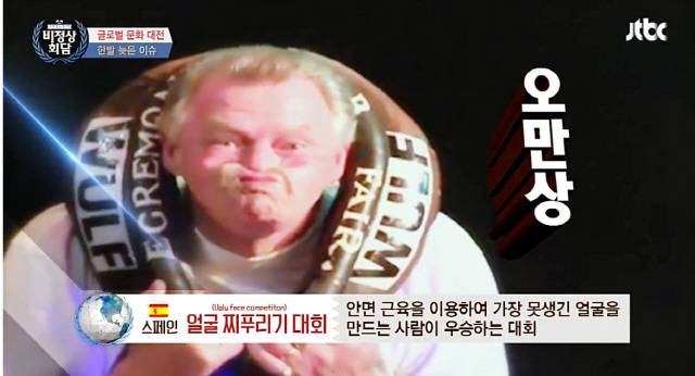 당시 벨기에 대표 줄리안은 "스페인에 얼굴 찌푸리기 대회가 있다"며 "안면근육을 최대한 이용해 최대한 못생긴 얼굴을 만드는 대회다. 영어로 '어글리 페이스 토너먼트'라고 한다"라고 소개했다. 독일 대표 기욤이 예상 외로 너무 얼굴을 잘 찌그려 모으자 폭소가 터졌다. 독일 대표 다니엘도 진지함을 버리고 도전했지만 제작진에 의해 모자이크 되는 굴욕을 받았다. 제작진은 "외모 1순위 지켜주고 싶었다"고 자막으로 설명해 웃음을 안겼다.