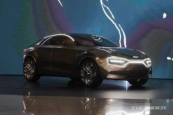 외관은 이매진 바이 기아 콘셉트와 퓨처론 콘셉트의 디자인 요소가 조합된다. 세단과 SUV가 결합된 쿠페형 크로스오버로 기아차 디자인 정체성인 타이거 페이스와 측면부 오토플러시 도어 핸들, 독특한 내부 그래픽의 슬림한 리어램프가 특징이다.