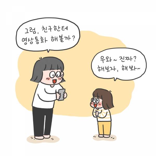 "그럼, 친구한테 영상통화 해볼까?"