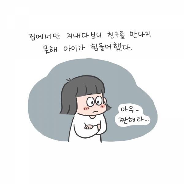 집에서만 지내다보니 친구를 만나지 못해 아이가 힘들어했다.