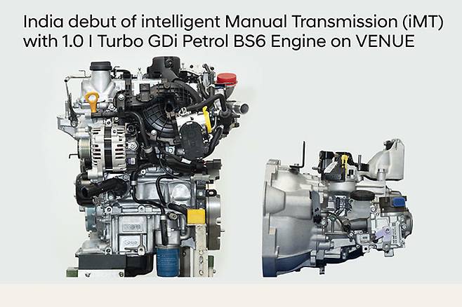 현대차 인도법인에서 발표한 최신 지능형 수동변속기(iMT)는 현지에서 판매하는 베뉴 SUV 버전에 장착될 예정이다. 현대차는 2-페달 방식, 6단 수동변속기를 업계 최초로 공개하고 1.0리터 T-GDi 가스 엔진과 짝을 이룰 것이라고 밝혔다.