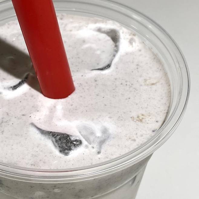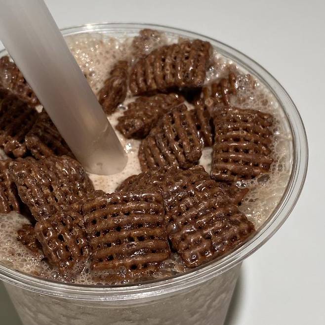 배스킨라빈스 바닐라 아이스크림과 초콜릿 아이스크림을 한 스쿱씩 넣는다. 첵스를 넣는다. 섞는다. 딱 상상되는 그 맛이다! 한 모금 마시면 갈린 첵스 알갱이도 함께 씹히는데, 이건 마치 첵스를 우유에 오랫동안 방치해두어 불어났을 때 먹는 그 식감. 정말 200%의 당이 필요할 때나 사 먹을 법하다.
