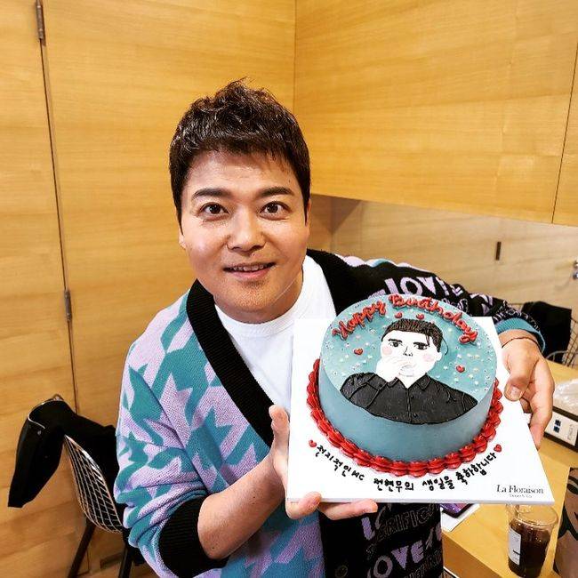 사진에는 전현무가 생일을 맞아 출연 중인 프로그램 제작진으로부터 받은 생일 케이크가 담겼다.