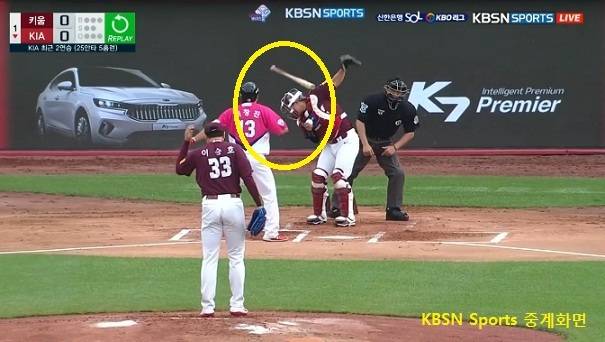 뭐지? 도발인가. 아니면 이것도 배트 플립? 하긴. KBO 리그 아닌가. 퍼포먼스의 왕국이다. MLB 따위는 감히 엄두도 못낸다. 다양함과 화려함의 궁극이다. 어쩌면 야구사를 수놓을 첫 사건일 지 모른다. 4구 다음의 배트 플립이라면 말이다.찰나의 혼란이 스친다. 그러나 가해자의 표정이 말한다. 당황스러움이다. 두 손을 젓는다. 미안함도 엿보인다. 구심(이용혁)이 사태에 개입한다. 적극적으로 둘 사이를 막아선다. 대치 상태는 곧 종식됐다.