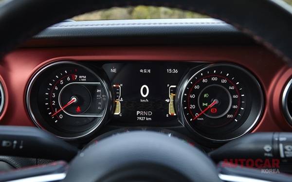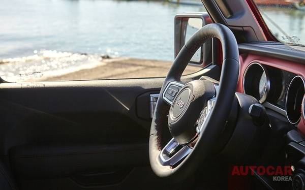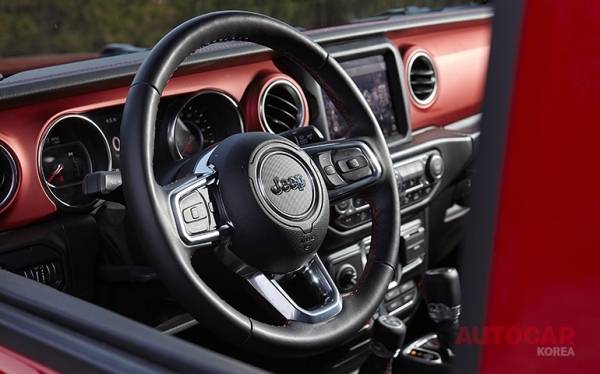 앞 모습은 영락없는 랭글러다. 실내도 랭글러와 별반 다를 게 없다. 아날로그 감성이 물씬한 계기반과 인테리어 설계. 조금은 불친절하지만 지프 헤리티지가 그대로 묻어나는 감성적 터치가 구석구석 배치돼 있다. 수많은 열혈팬이 열광하는 견고한 신뢰성이 터프하면서도 세련된 오라와 함께 강렬하게 다가온다. 실용에 방점을 맞춘 만큼 2열 시트 아래와 뒤쪽에 수납 공간을 촘촘히 마련해 편의성도 한결 더했다.