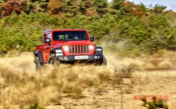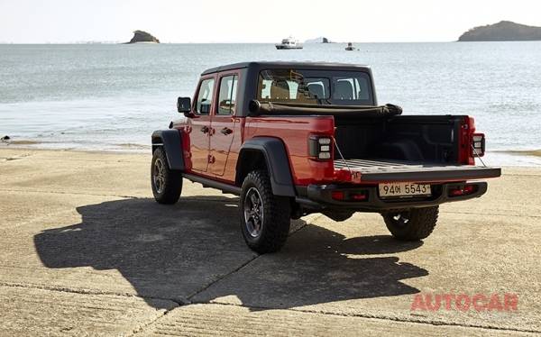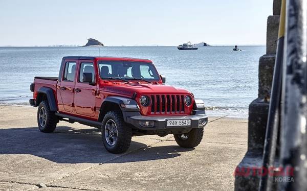 앞모습은 랭글러인데 옆모습을 보면 과도하게 길다. 전장 5.6m이면 어지간한 기함급 세단이나 대형 SUV에 비해 살짝 긴 정도라 그리 압도적 길이도 아닌데 몹시 길게 느껴진다. 3박스 형태의 랭글러. 첫 느낌은 생경하다. 지프의 픽업이라니.