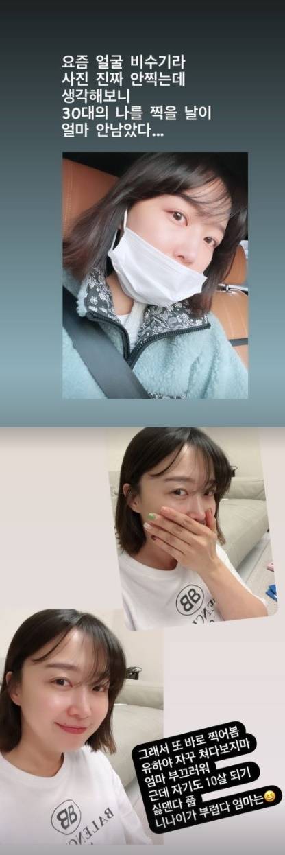 한유라 씨는 28일 오후 자신의 인스타그램 스토리에 "요즘 얼굴 비수기라 사진 진짜 안 찍는데 생각해 보니 30대의 나를 찍을 날이 얼마 안 남았다"라며 "그래서 또 바로 찍어봄. 유하야 자꾸 쳐다보지마. 엄마 부끄러워 근데 자기도 10살 되기 싫단다 풉 네 나이가 부럽다 엄마는"이라는 글과 함께 사진을 게재했다.