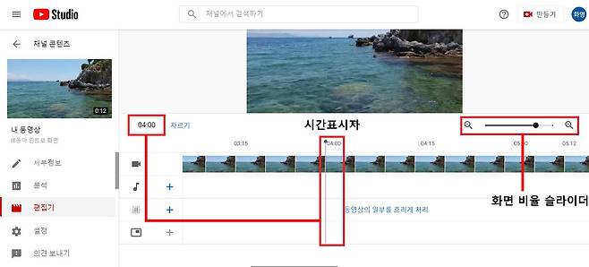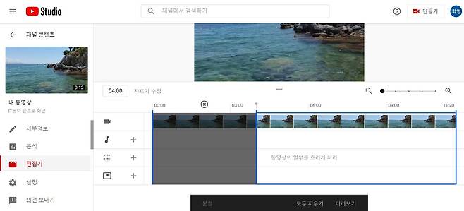 유튜브 스튜디오에서 불필요한 영상 자르기