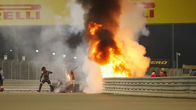 그로장이 스스로 탈출할 수 있었던 데는 2018년 도입된 헤일로가 큰 역할을 했다. 2014년 빗길에서 펼쳐진 일본 그랑프리에서 일어난 줄스 비앙키의 사망사고로 도입된 헤일로는 드라이버의 머리를 보호하기 위해 부착된 안전 구조물이다.