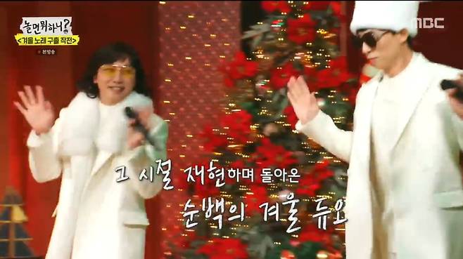 레드벨벳 의상을 입고 등장한 유재석은 '겨울 노래 구출 작전'의 시작을 알렸다. 첫 무대는 유재석은 물론 많은 사람들이 겨울 노래로 꼽았던 미스터투 '하얀겨울'로 꾸며졌다. 격한 반가움을 드러낸 두 사람에게 박선우는 "지난 주 방송을 봤는데 불러주셨으면 좋겠다고 생각했다"고 말했다. 겨울이 되면 여전히 '하얀겨울'이 사랑받는다는 이야기에 박선우는 "28년이 넘었는데 많은 분들이 아직도 생각해주신다는 것이 영광이고 감사하다"고 인사를 전했다.