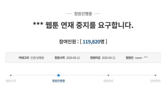 ● '연재NO' 국민청원 등장…11만명 동의