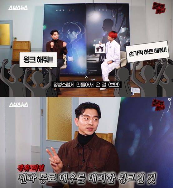 이에 대해 공유는 "무대 인사에 온 팬 여러분을 위해 짧은 시간 안에 뭐라도 해주고 싶었다"면서 "팬들의 다양한 요구 사항이 있었는데 동료 배우들에게 방해가 되면 안 되니까 조심스럽게 윙크를 한 것"이라고 밝혔는데요, 이어 "팬분이 윙크를 보고 조금 머금으셨으면 되는데 '으악~'하고 감탄하셨다. 그럼 옆에 눈치가 보이고, 또 예의가 아닌 것 같더라"며 당시 고충을 털어놓기도 했습니다.