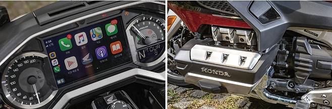 양 : 멋진 풍경을 달릴 때 그럴싸한 배경음악은 투어의 감동을 더해준다. 하지만 큰 오디오 소리로 주변에 피해를 끼치는 것을 지양해야 한다는 것은 동의한다. 그래서 속도에 따라 오디오 소리가 조절되는 기능도 있다. 또 골드윙에는 버튼 하나로 헤드셋과 스피커를 전환하는 기능도 갖추고 있다.