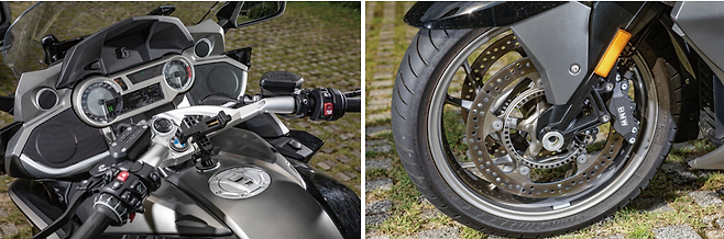 양 : 운동성이 경쟁 차종과 다른 방향인 게 엔진 출력 특성이라든지 스포츠 투어링 사이즈인 17인치 휠을 장착한 것도 K 1600 GTL의 성격을 드러내는 설정이다.