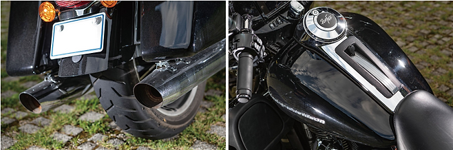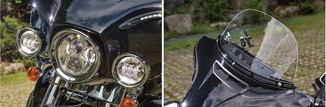 양 : 라이더에게 전달되는 불쾌한 느낌이 적은 바이크다. 물론 골드윙이나 K 1600 GTL의 에어로 다이내믹은 주행 성능을 위한 것이라면 할리는 쾌적함을 중시하는 설정인것 같다. 특히 라이더에게 바람을 보내주는 날개는 K 1600 GTL이 처음 출시할 때 엄청 자랑하던 것인데 당시 할리 투어링 모델에는 같은 기능을 하는 것이 이미 있었다.