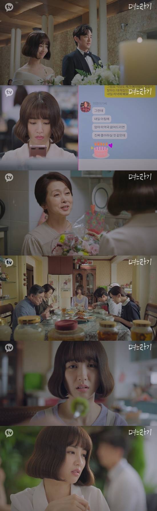 민사린과 무구영(권율)의 결혼으로 시작된 '며느라기', 결혼 후 시어머니 박기동(문희경)의 첫 번째 생신을 맞게 된 민사린은 시누이의 제안으로 '생일상'을 차리게 됐다.