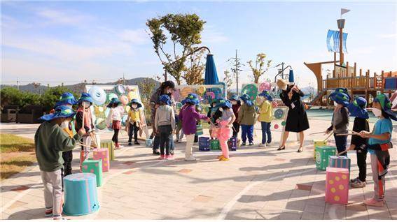 다양한 놀잇감으로 협력과, 환경 교육을 재미있게 배울 수 있는 업 사이클링 놀이터는 뮤직 플레이 존, 현수막 놀이터, 폐박스 젠가, 고리 끼우기, 옷걸이 비누방울 등 8가지의 놀이 종류로 구성 되어 있다.