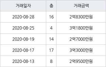 [이 기사는 조선비즈와 아티웰스가 공동으로 개발해 서비스하는 로봇 기사입니다.]국토교통부 실거래가 공개시스템에 따르면 지난 2020년 8월 17일 부산광역시 부산진구 부암동 부암동화승아파트 17층 전용면적 84㎡형이 3억3000만원에 거래됐다.