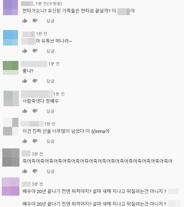 네티즌들은 “유튜브를 떠나라” “정배우가 아기를 죽인 것이다” “살인마”와 같은 악성 댓글을 남기는 한편 정배우에 대한 인신공격과 욕설도 서슴지 않고 있다. 특히 네티즌들은 “이 남자는 태아를 죽였습니다”라는 문장을 각국 언어로 번역한 댓글을 끊임없이 올리며 유튜브 댓글을 도배하고 있었다.
