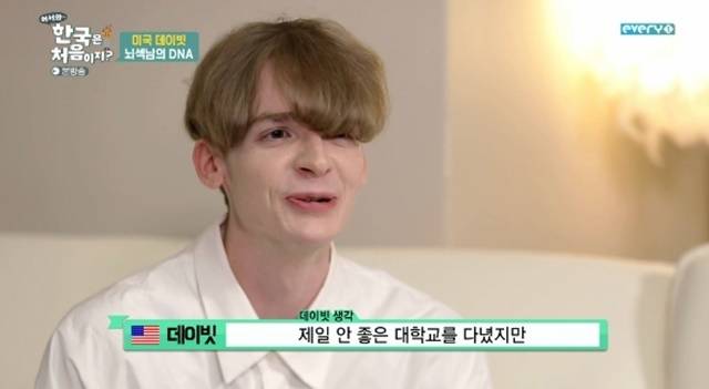 MC들이 “집안의 자랑거리겠다”라고 하자 데이빗은 “가족들 중 가장 안 좋은 대학교를 나왔다”며 누나는 시카고대, 어머니는 하버드대, 아버지는 스탠퍼드대를 졸업했다고 밝혔다.