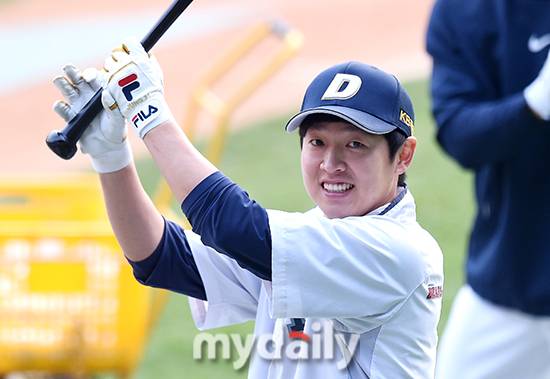 [MD포토] 정수빈 '잠실 아이돌의 미소'