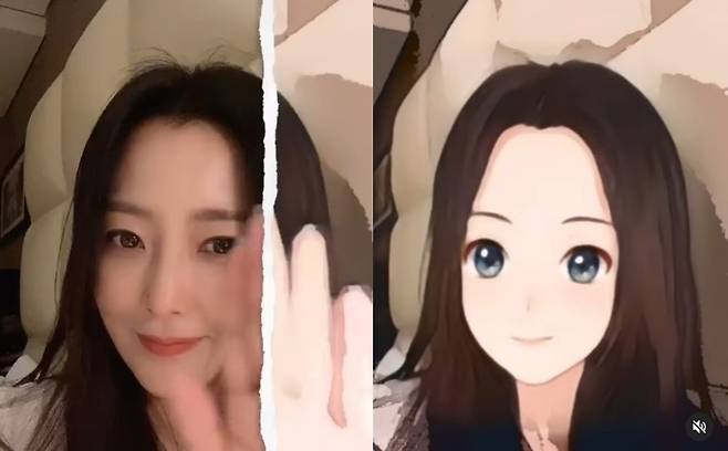공개된 영상에는 자신의 얼굴에다가 장안의 화제인 한 어플리케이션 순정만화 필터를 적용하는 김희선의 모습이 담겼다.