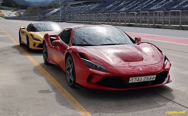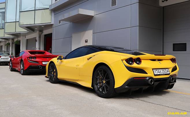 앞선 인스트럭터의 차는 GTC4루쏘 T, 내가 탄 차는 F8 트리뷰토다. 두 차의 출력 차이는 110마력(F8 720마력 vs 루쏘T 610마력). 공차중량도 430kg(F8 1,435kg vs 루쏘 T 1,865kg)이나 다르다. 차의 성능만 놓고보면 F8이 GTC4루쏘 T를 ‘압살’하기 충분하지만, 운전자 실력까지 고려하면 결과는 정 반대가 될 터다. 그가 그동안 트랙에서 녹여낸 타이어 가루만 모아도, 내가 평생 쓸 타이어보다 많을 테니까.