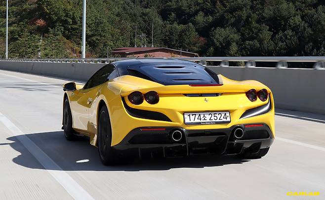 F8 트리뷰토는 평소보다 과하게 코너를 진입해도 언더스티어 없이 천연덕스럽게 고개를 틀었고, 엉덩이는 의연하게 앞바퀴 궤적을 따라 물고 늘어졌다. 처음에 GTC4루쏘 T와 F8 스파이더를 따라 세 번째로 달렸는데, 뒤에서 본 앞선 두 차의 거동도 생각보다 차이가 컸다. 좌우 기울어짐 없이 노면에 착 붙어 코너를 날카롭게 잘라먹는 건 확실히 F8 스파이더였다. 같은 페라리 라인업 사이에도 각각의 성격이 드러나더라.