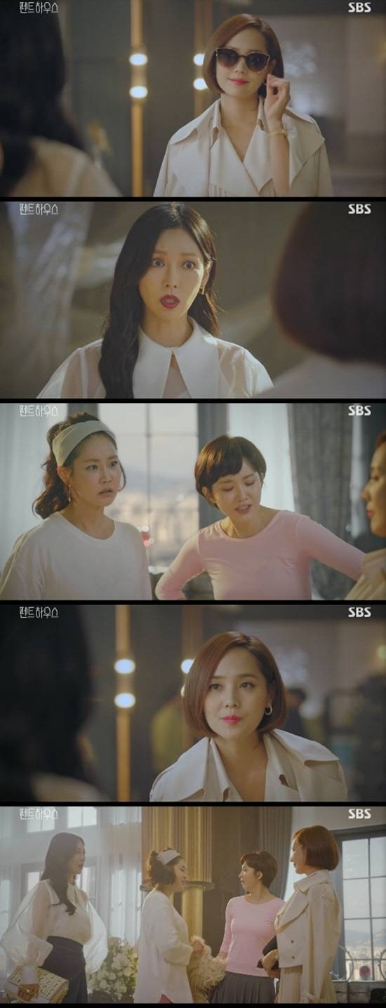 강마리(신은경)는 "이 여자가 실성을 했나. 말 같은 소리를 해야 듣는 시늉이라도 하지"라며 경비원을 불렀다. 고상아(윤주희) 역시 "아무나 들어올 수 없다. 입주자 추천이라든가"라며 소리쳤다.