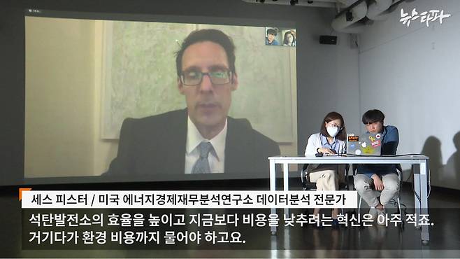 미국의 비영리 민간연구기관인 에너지경제재무분석연구소(IEEFA) 데이터분석 전문가인 세스 피스터 씨는 “석탄화력 발전은 효율을 높이고 비용을 낮추려는 어떠한 혁신도 없다”며 “앞으로 환경비용이 더 늘어날 것이라는 우려때문에 석탄이 더이상 저렴하지 않다는 인식의 전환이 이뤄졌다”고 설명했다.