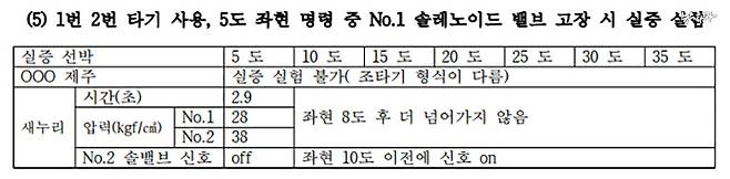 그러나 실제로는 달랐습니다. 당시 보고서에 따르면, 타가 명령 타각인 5도를 넘어 10도에 이르러서야 ‘이상 타각 경보’가 울리면서 반대측 솔레노이드 밸브가 작동했습니다. 같은 방식으로 우현 10도 타각 명령을 줬을 때 역시 15도가 되어서야 반대측 솔레노이드 밸브가 작동했습니다. ‘설계’와 ‘실제’는 차이가 크다는 점을 보여준 겁니다.