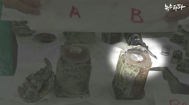 " style="width: 780px;" alt="▲ 2018년 2월 고착된 상태로 발견된 세월호 타기장치의 솔레노이드 밸브 철심">
