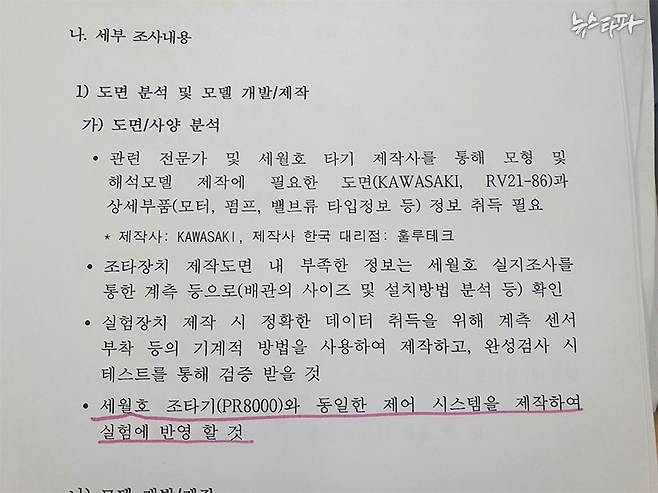 이 때문에 사참위도 모형 시험을 기획하면서 실제 세월호 조타기 모델인 PR-8000 시스템을 반영시키려 했습니다. 이는 나라장터에 게재돼 있는 사참위의 모형시험 용역 과업지시서에서 분명히 확인됩니다.