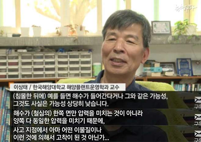 “솔레노이드 밸브 고착이 발생하더라도 실제로는 전타(우현 35도)가 되지 않는다는 것이 실험으로 검증이 되었고, 결과적으로 선조위 (내인설) 보고서의 시나리오는 기각된 것입니다.”