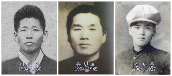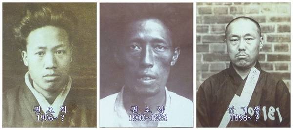 | ▲ 모스크바 동네로 불린 가일마을 출신의 사회주의자들. 권오직은 권오설의 동생으로 해방 후 북한의 중국대사, 안기성은 조선노농총동맹 중앙집행위원을 지냈다. 권오상도 공청회원으로 복역 후 고문 후유증으로 숨졌다. |