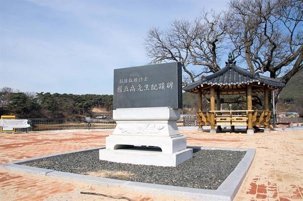 | ▲ 가을마을 앞 저수지 옆에 2001년에 건립된 항일 구국 열사 권오설 선생 기적비. |
